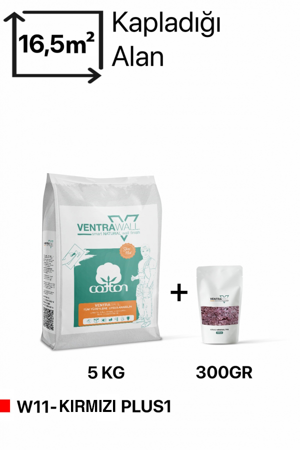 Ventrawall W11-KIRMIZI-PLUS1-5KG– Yalıtımlı Sürülen mineral taşlı Beyaz Duvar Kağıdı